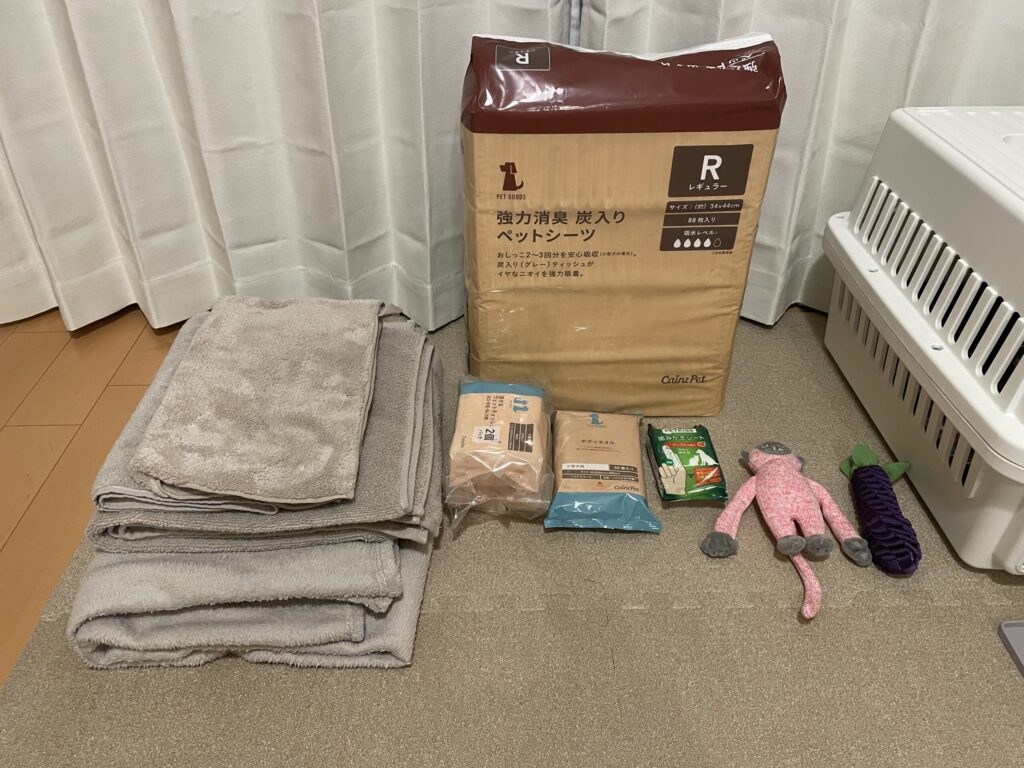 最初はトイレを失敗してしまうこともあるので、ベッドやタオルはお手頃なものを用意しました。